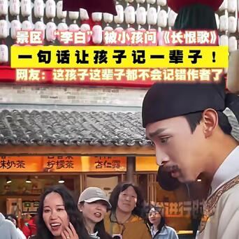 【笑不活了!景区NPC“李白”被小孩追问《长恨歌》,一句话让孩子记一辈子】河北一景区,一小男孩偶遇扮成李白的演员,当场化身好奇宝宝,拽着人家就问:“李白先生,您写《长恨歌》的时候配资安全证券配资门户,心里是啥感受呀?”